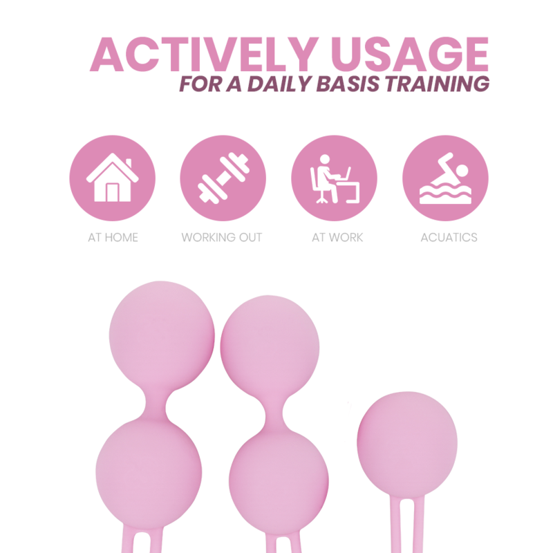 Intimichic Pelvis Health II ; Basado en la realización de ejercicios de Kegel, desarrollados por el Dr. Arnold Kegel, son una serie de contracciones y relajaciones vaginales que fortalecen el músculo Pubococcígeo (PC) y el grupo de músculos del suelo pélvico mediante el aumento gradual de pesos.